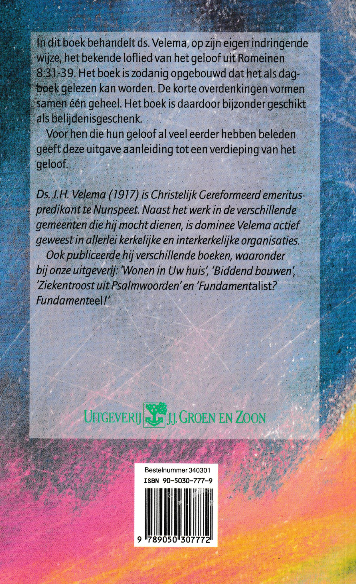 In dit boek behandelt ds.Velema, op zijn eigen indringende wijze, het bekende loflied van het geloof u In Romeinen 8:31-39. Het boek Is zodanig opgebouwd dat het a Is dagboek gelezen kan worden. De korte overdenkingen vormen samen en geheel. Het boek is daardoor bijzonder geschikt als belijdenisgeschenk. Voor hen die hun geloof al veel eerder hebben beleden geeft deze uitgave aanleiding tot een verdieping van het geloof.